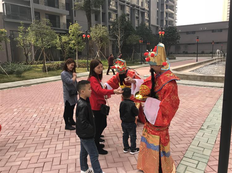 大年初一,清远篁胜新城项目“财神”给小区业主拜年